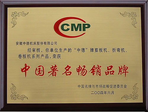 中德牌機床獲得“中國著名暢銷品牌”榮譽稱號