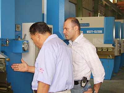 2005年6月23日上午,位于沙特阿拉伯首都利雅得市的沙特納美拉空壓機(jī)廠廠長阿貝德·塔巴拉等一行來我公司參觀考察,阿貝德先生此行主要來考察我公司折彎機(jī)、剪板機(jī)產(chǎn)品,考察中對我公司產(chǎn)品外觀、結(jié)構(gòu)均表示滿意并與我公司達(dá)成進(jìn)一步合作的意向!
