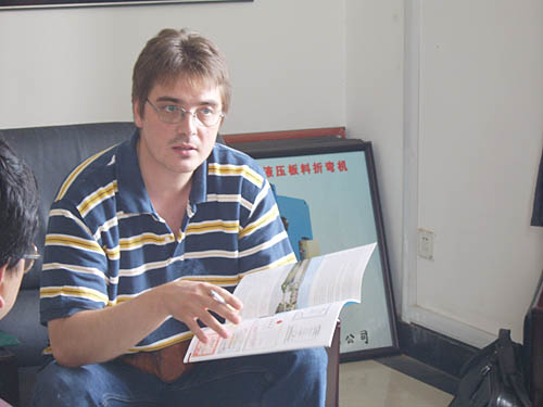 2005年7月26日上午,波蘭Projprzem Eko公司生產(chǎn)部總經(jīng)理米奧蘇華先生等一行來我公司參觀考察,米奧蘇華先生此行來我公司主要是洽談采購數(shù)控折彎?rùn)C(jī)、剪板機(jī)事宜,考察中對(duì)我公司的產(chǎn)品表示非常滿意!