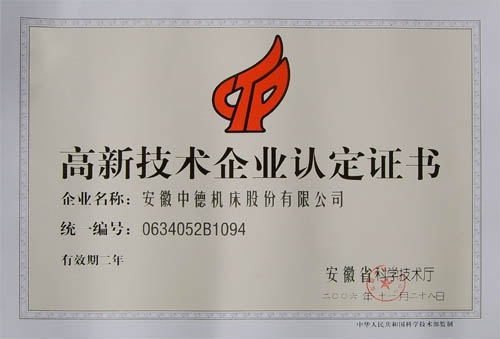 根據(jù)《國(guó)家高新技術(shù)產(chǎn)業(yè)開發(fā)區(qū)高新技術(shù)企業(yè)認(rèn)定條件和辦法》、《國(guó)家高新技術(shù)產(chǎn)業(yè)開發(fā)區(qū)外高新技術(shù)企業(yè)認(rèn)定條件和辦法》及我省實(shí)施細(xì)則規(guī)定的條件,我公司等39家單位經(jīng)省科技廳或各市科技局、高新區(qū)組織的高新技術(shù)企業(yè)認(rèn)定專家評(píng)審會(huì)通過,經(jīng)公示無異議,省科技廳審批認(rèn)定為“高新技術(shù)企業(yè)”(證書編號(hào):0634052B1094)。同期,我公司研制開發(fā)的“WE67K電液同步數(shù)控折彎?rùn)C(jī)”,被省科技廳審批認(rèn)定為“高新技術(shù)產(chǎn)”(證書編號(hào):3405004867),自批準(zhǔn)之日起享受國(guó)家和省對(duì)高新技術(shù)企業(yè)(產(chǎn)品)給予的優(yōu)惠政策。