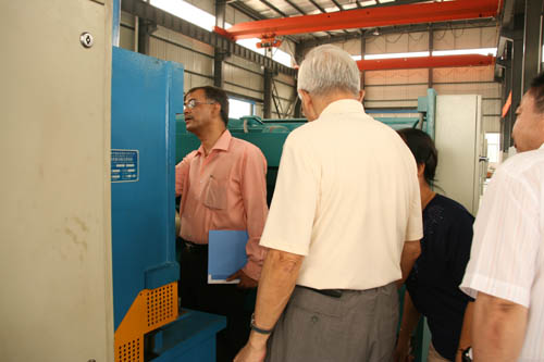 在公司領(lǐng)導(dǎo)的陪同下,PRAKASH先生參觀了公司的成品車間和生產(chǎn)車間,對(duì)我公司的生產(chǎn)及研發(fā)能力表示出極大的贊賞。我公司智能化的辦公和流水線系統(tǒng)吸引了PRAKASH先生一行。在操作人員的協(xié)作下,有著二十多年從業(yè)經(jīng)驗(yàn)的PRAKASH先生對(duì)我公司的QC11Y大型機(jī)床進(jìn)行了細(xì)致入微的考察,而我公司的機(jī)床也以其過硬的品質(zhì)和精密的設(shè)計(jì)贏得了PRAKASH先生的好評(píng)。
