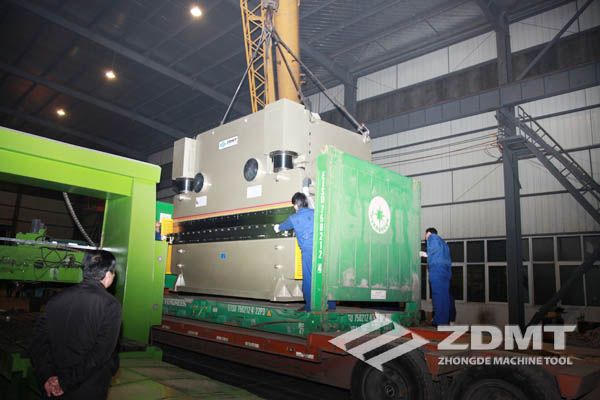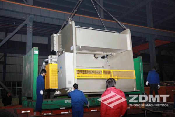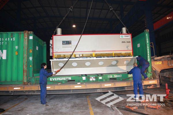 公稱壓力500噸的數(shù)控折彎機和剪切能力16毫米的數(shù)控閘式剪板機分別超過30噸和20噸,外形尺寸完全超過了普通集裝箱的尺寸。像這種類型的機器在國內發(fā)貨很平常,但是對于出口來說情況卻完全不同。由于框架箱運輸?shù)奶厥庑砸约昂_\運輸?shù)娘L險性,對機器的包裝和捆扎是對工廠的新考驗。